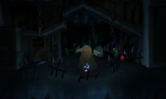The Small Grave is a small room found at the end of the secret area Inner Wall. The Small Grave has only one item of note in it: a statue of a dead Prinny (The NIS America mascot).